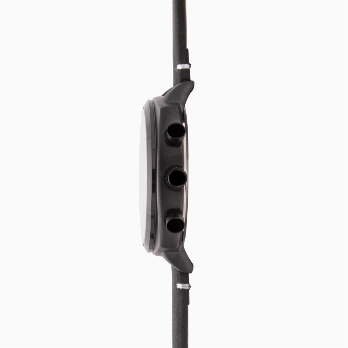 Product details This pilot styled chronograph watch has a cushion shaped, black alloy case with a black matte dial with cream printed batons. Fastened with a black suede leather strap, this watch also has chronograph timing up to 60 minutes, a date display and is water resistant up to 50 metres.