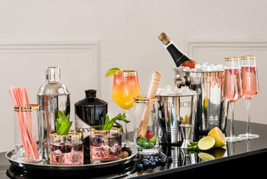 The tapered design of the Charleston champagne glasses ensures that their contents will stay fizzy for longer. Individually hand blown, each glass has beautiful silver and gold lines around the rim. Inspired by the decadence that underwrote the art deco period, these glasses are great for special occasions.