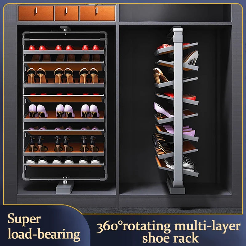 Shoe Rack Wardrobe Pull Basket Luxury Multi-Layer Household Cloakroom 360-Degree Wardrobe Push And Pull Rotating Shoe Rack