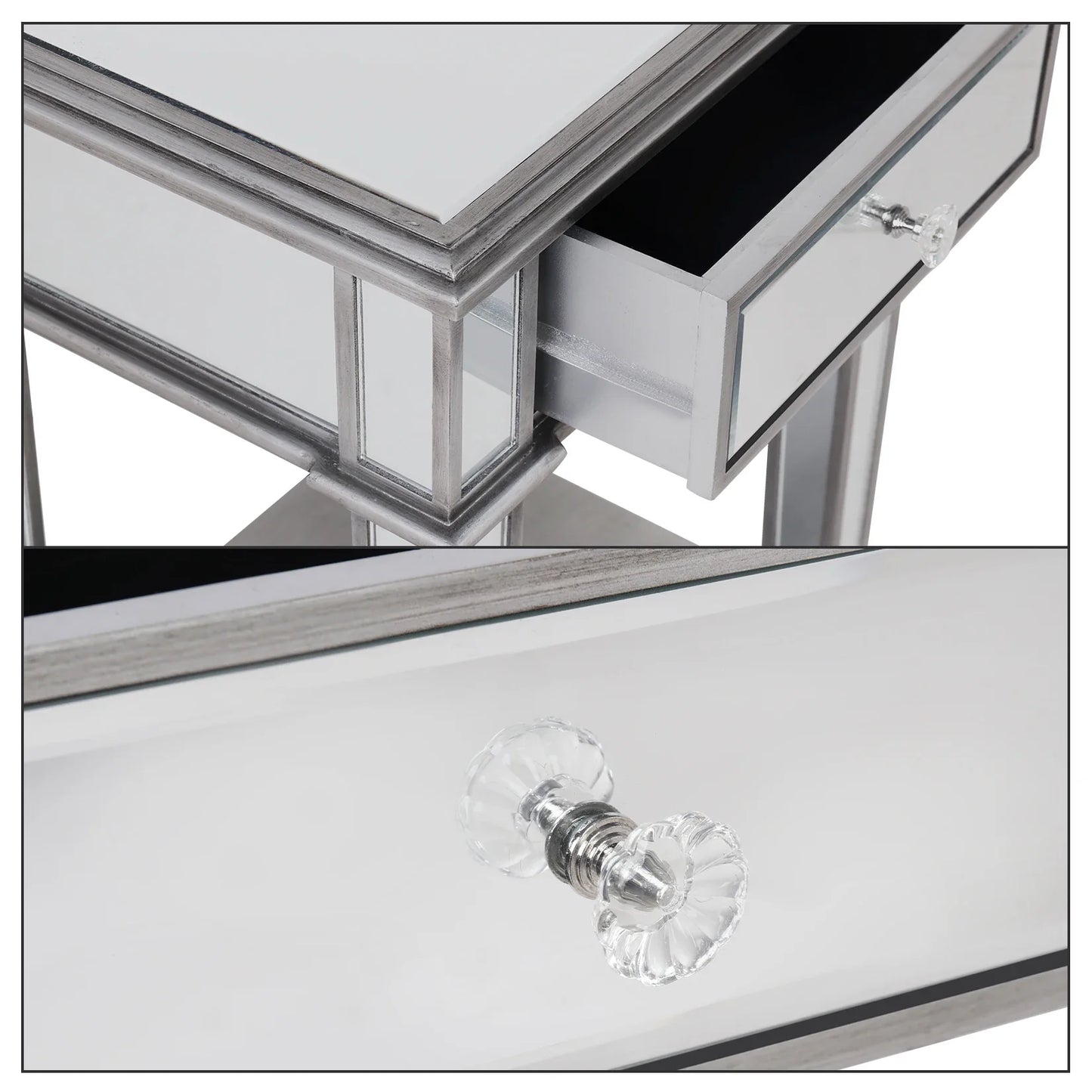 Silver Mirrored End Table for Living Room Bedroom, 2 Tier, Sofa Side, Bedside Cabinet, Nightstand Desk with Drawer