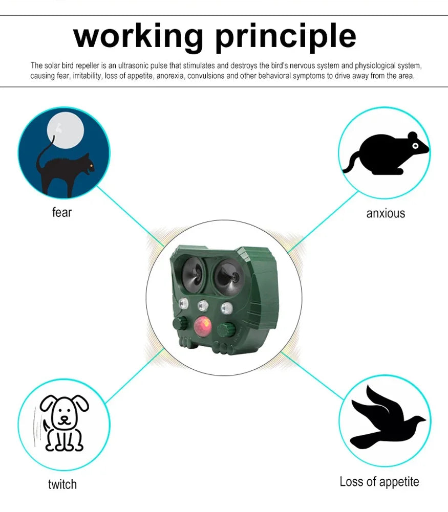 Solar Powered Animal Repeller Solar Ultrasonic Animals sonar Repellent