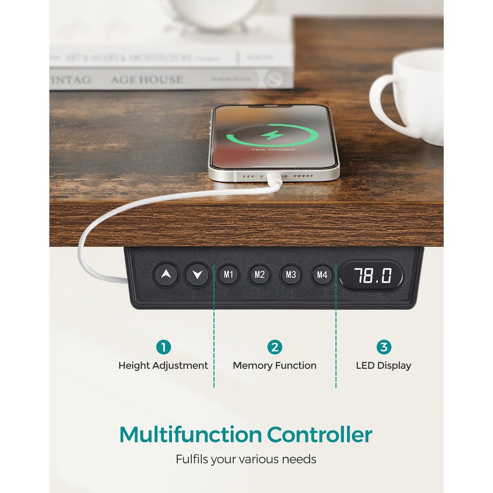 SONGMICS Electric Standing Desk, Height Adjustable Desk, 60 x 120 x (72-120) cm,Spliced Tabletop, 4 Memorable Heights