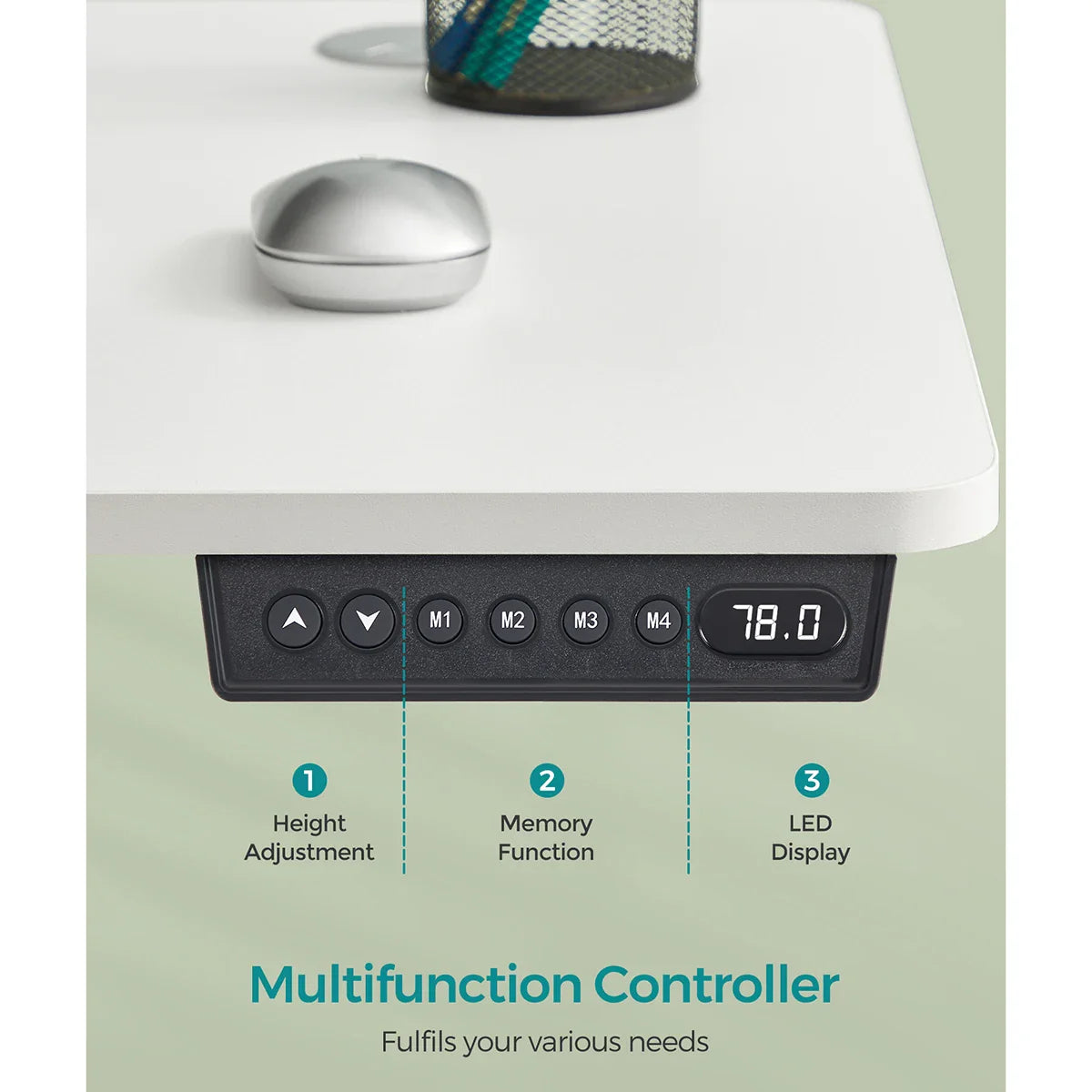 SONGMICS Electric Standing Desk, Height Adjustable Desk, 60 x 140 x (72-120) cm, Continuous Adjustment, Spliced Tabletop