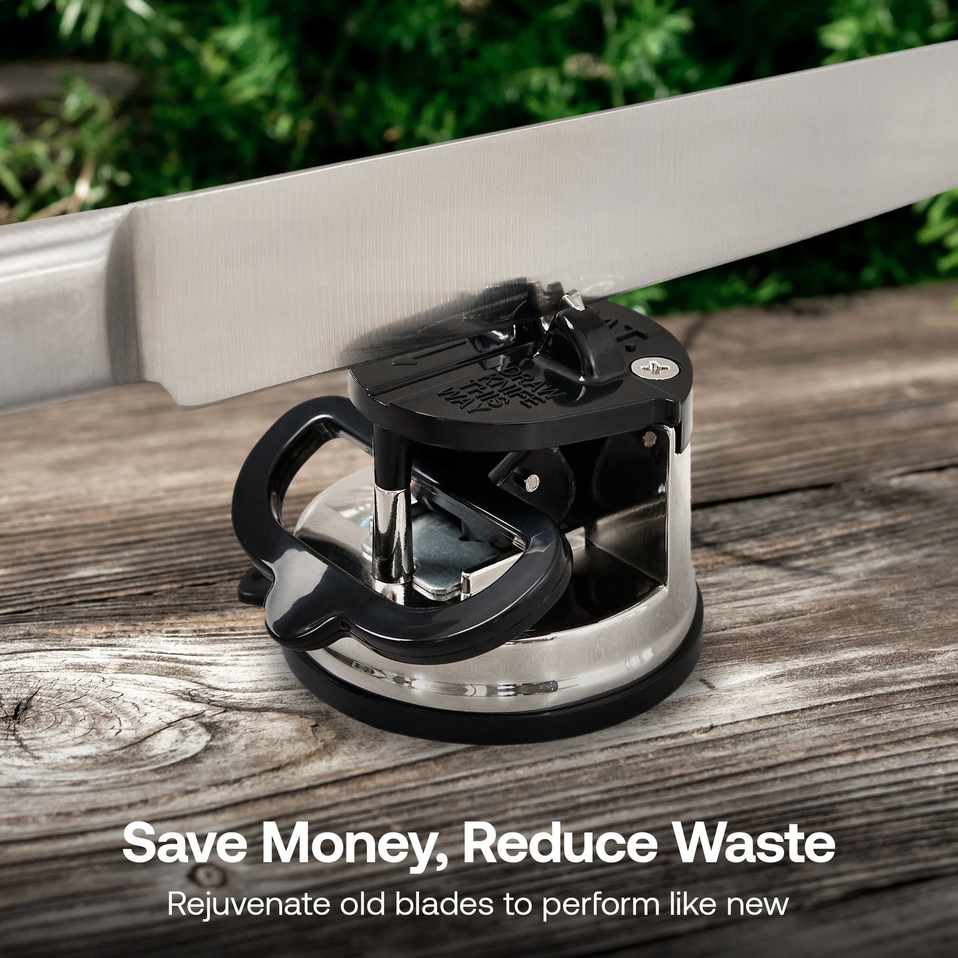 - The PowerGrip suction base ensures safe, hands-free sharpening on any flat surface.