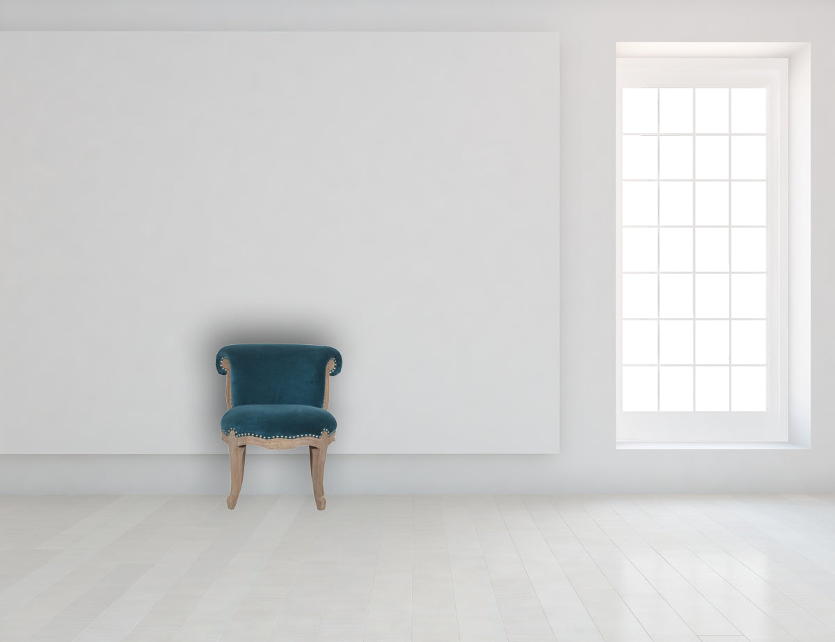 - Upholstery: Made from soft teal cotton velvet for a luxurious feel.