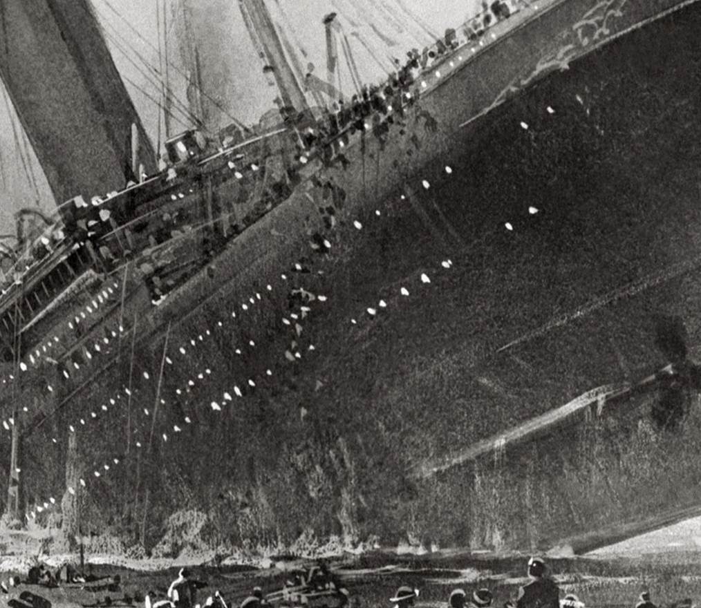 The German artist Willy Stower created this illustration in 1912, the same year the Titantic sank. This representation of the ship sinking and passengers escaping from it includes great detail and has become iconic.