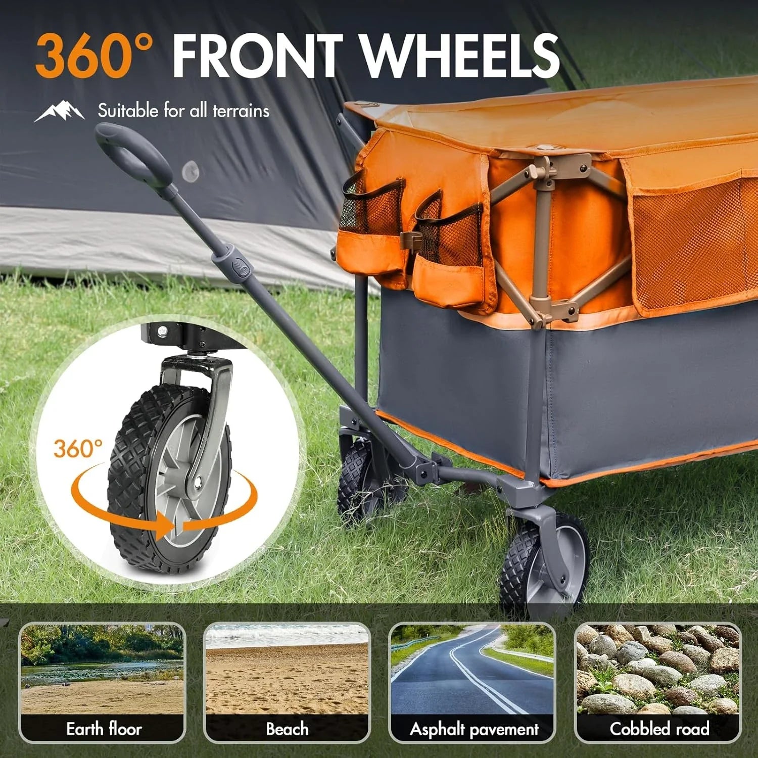 - 【EASY TRANSPORT】 No assembly required. Easy set up and fold in seconds. With a compact design, the outdoor wagon cart can be folded into a portable bag. It is easily stored in a closet, garage or in the trunk of any standard car.