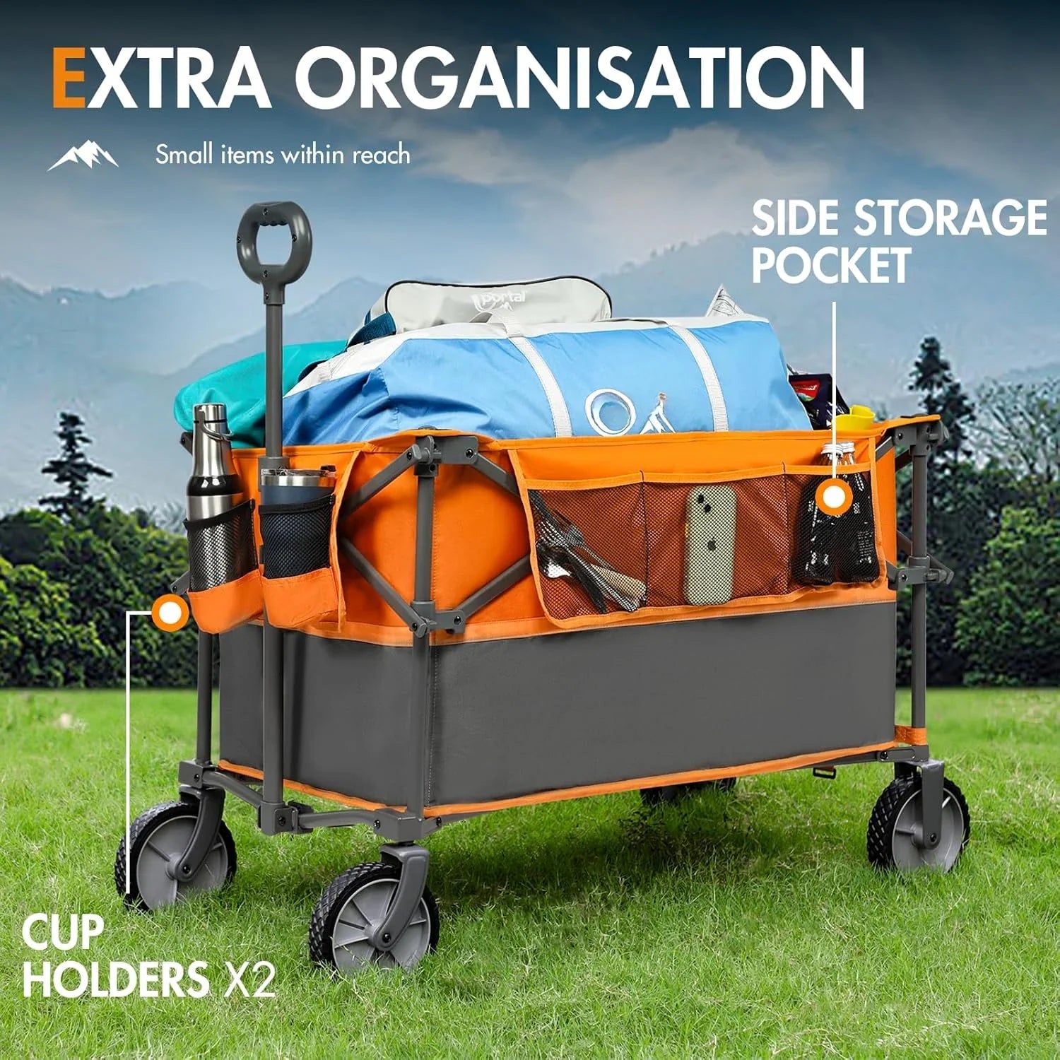 Trolley 228L Larger Capacity Folding Camping Garden Beach Trolley Heavy Duty Pull along Cart Collapsible Wagon with Wheels