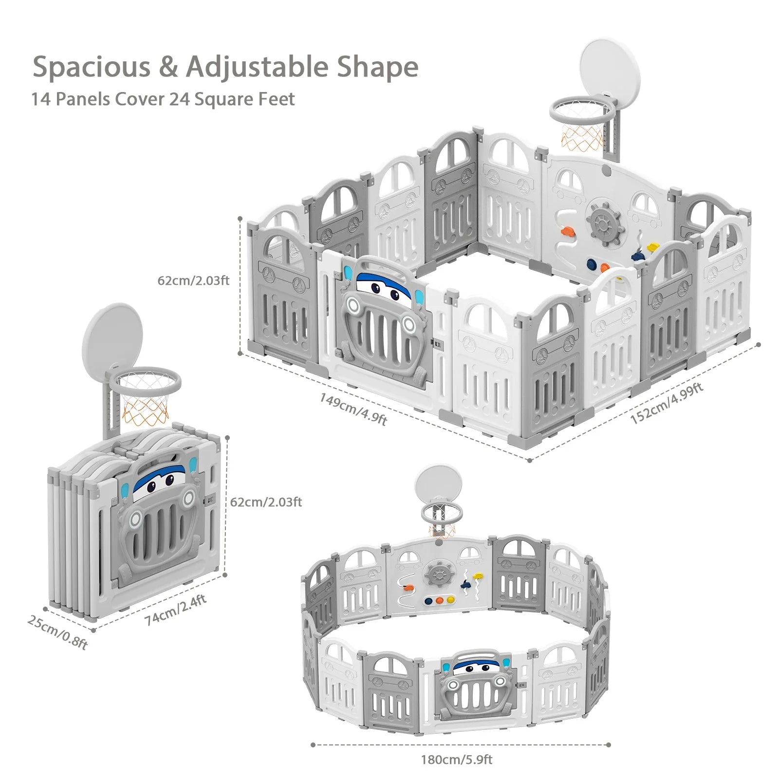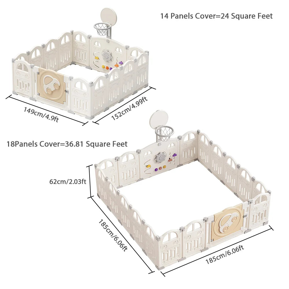 UBRAVOO Foldable Baby Playpen with Basketball Hoop & 50Pcs Coloured Pit Balls, Toddler and Baby Play pen fence, 14-Panel
