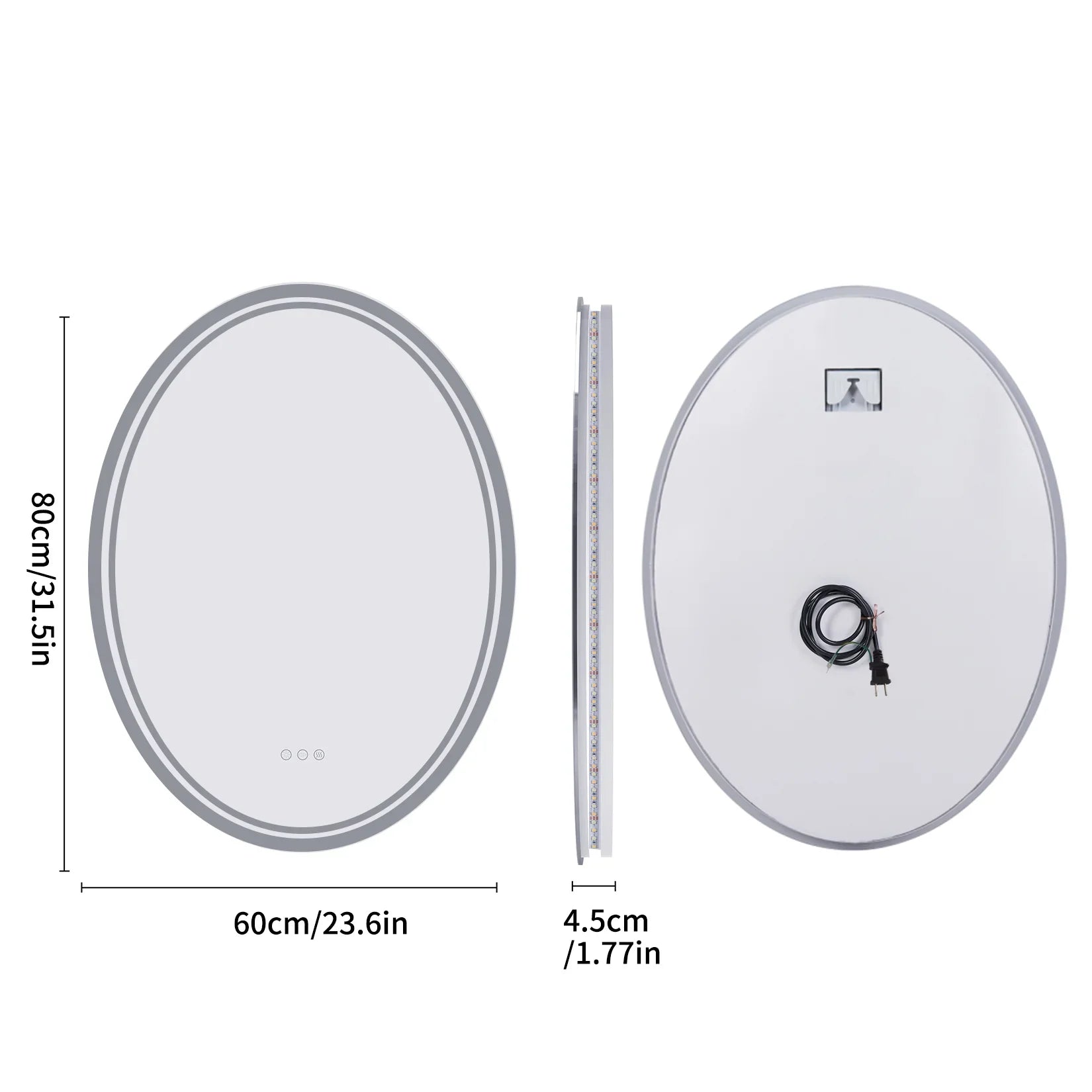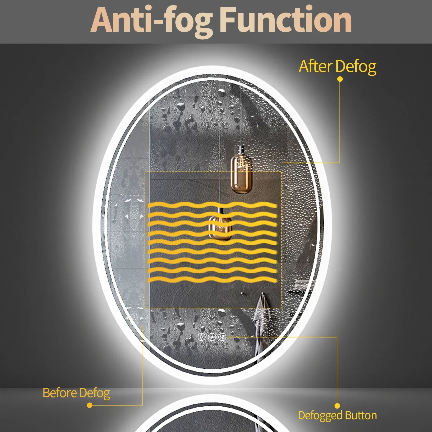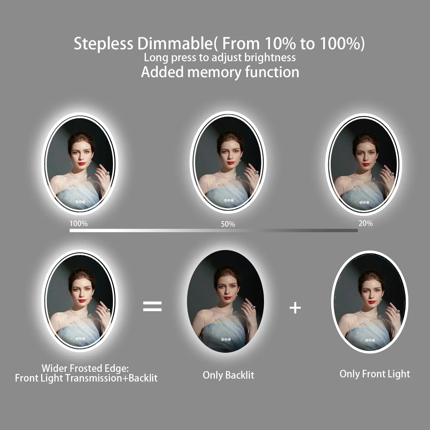 Ultra Bright Oval LED Bathroom Mirror, Anti-Fog, Dimmable, Backlit, Lighted Vanity Mirror, 3 Touch Switch, 28 ", 32"