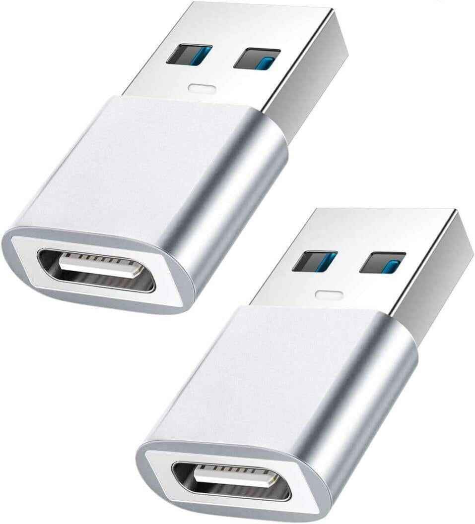 USB C to USB Male Adapter, YOKELLMUX Mini Hi-speed USB Female (Type-C) to USB 3.1 Male (Type-A) Fast Charging & Data Sync OTG Adapter Connector Converter - 2 Pack (Silver)