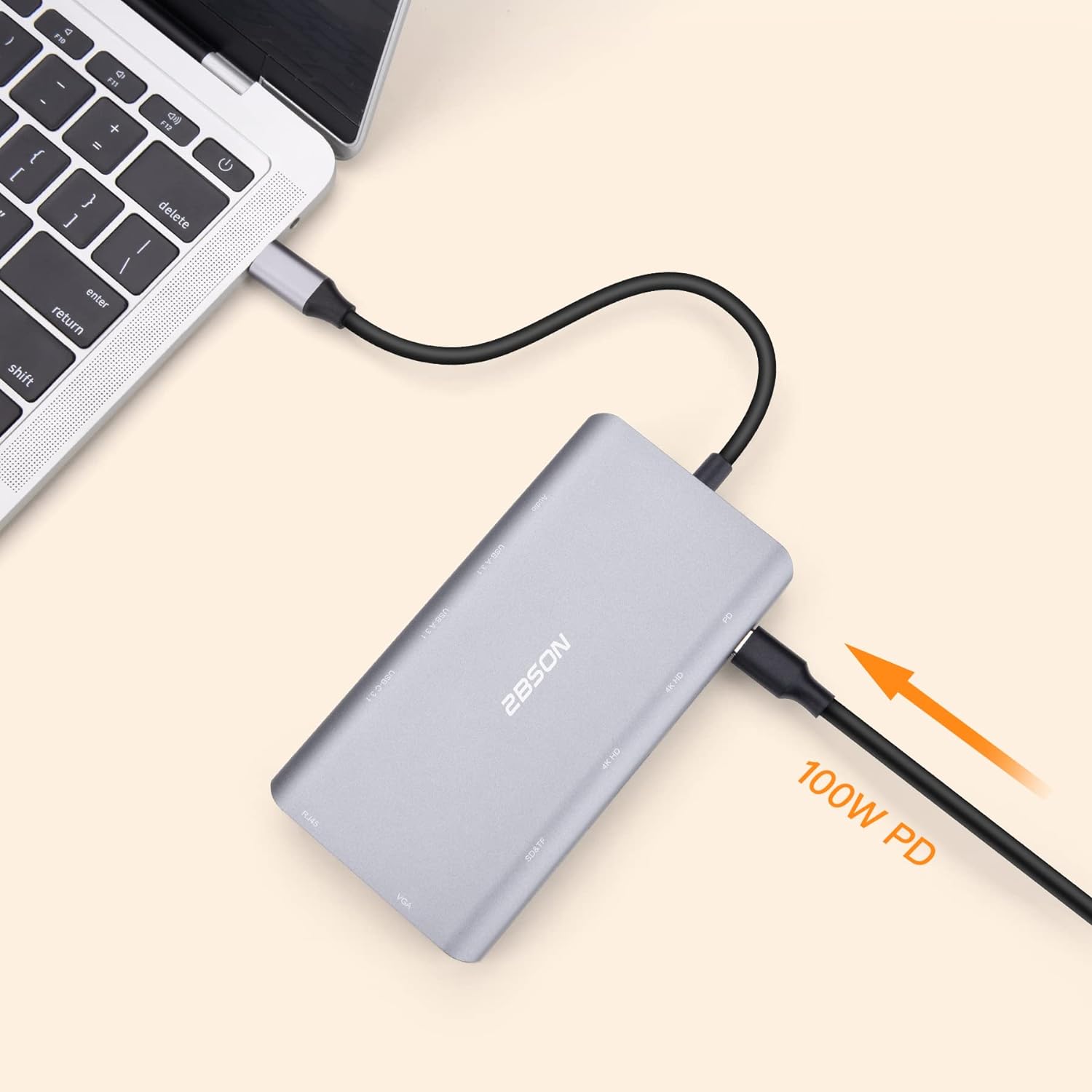 2BSON 11 IN 1 USB C Hub, Multiport Adapter to 4K HDMI, Ethernet,100W PD, USB3.1 Ports, MicroSD/TF for MacBook, iPad Pro, Dell, HP, Surface