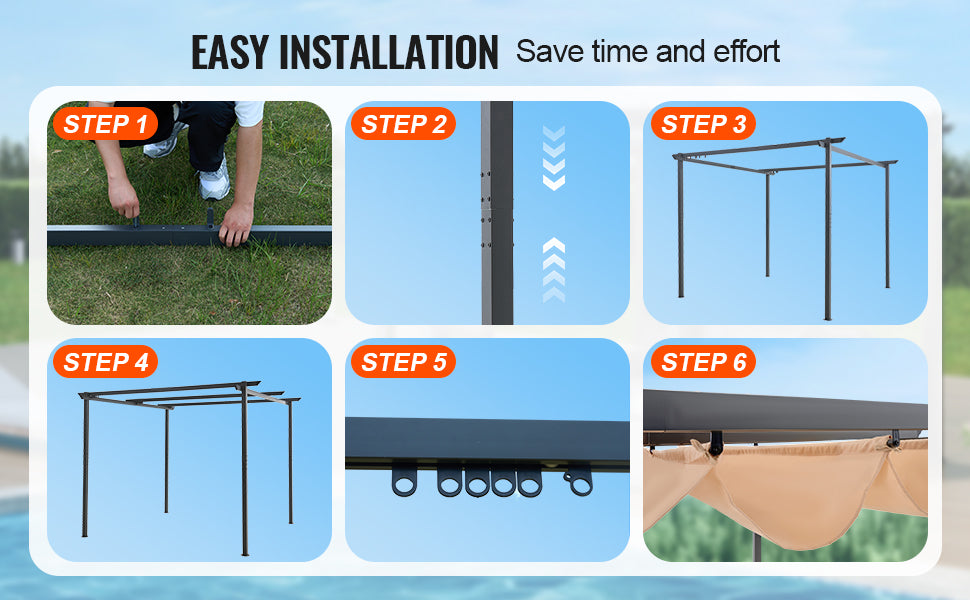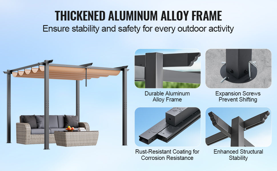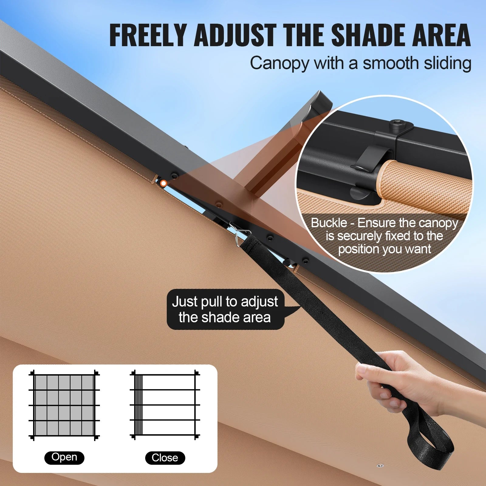 VEVOR 10'x10' Outdoor Retractable Pergola with Canopy Aluminum Pergola with Canopy Modern Pergola with Shade Canopy for Patios