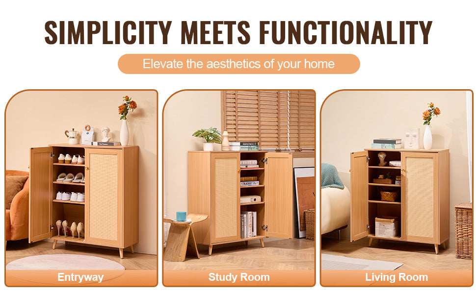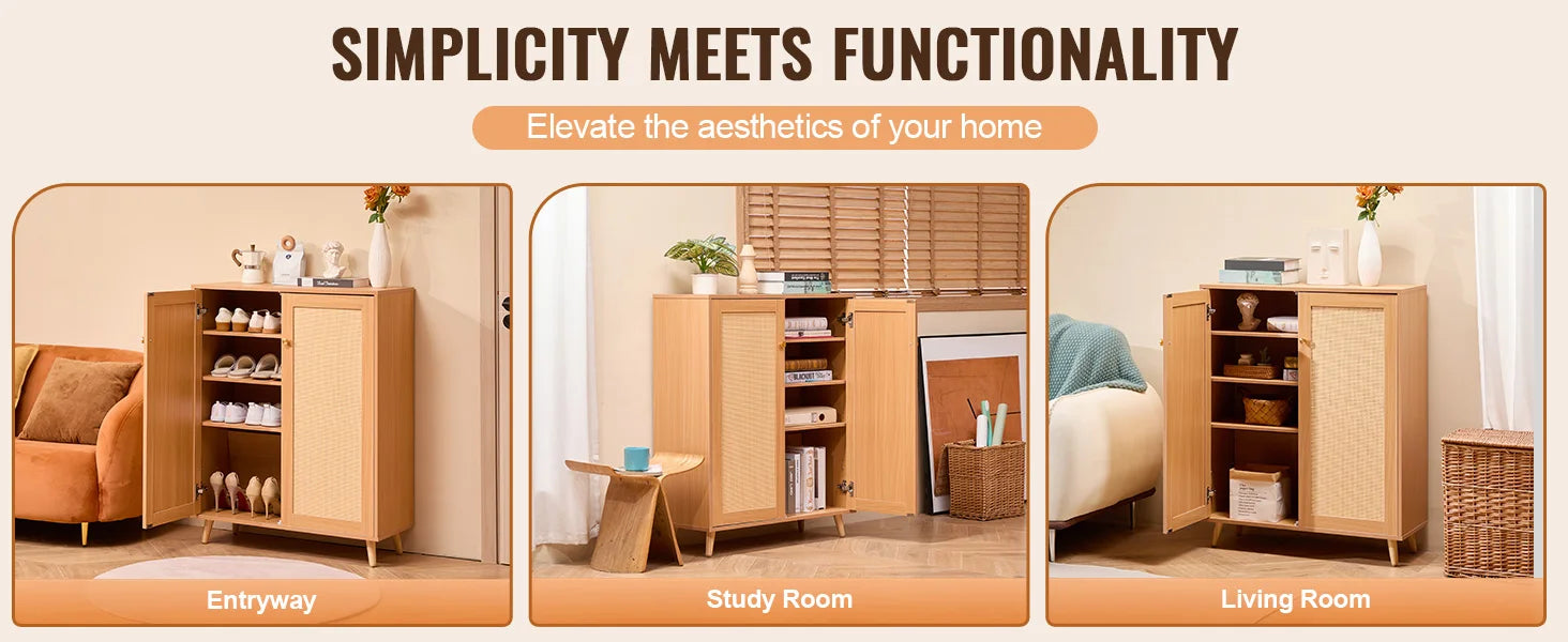 VEVOR 5 Tiers 2 Doors 40.35" Tall and Adjustable Shelves Rattan Shoe Storage Entryway Cabinet Ideal for Entryway Closet Hallway