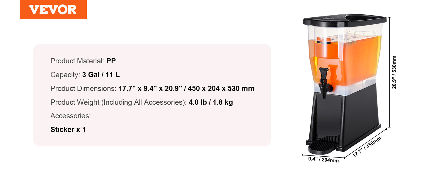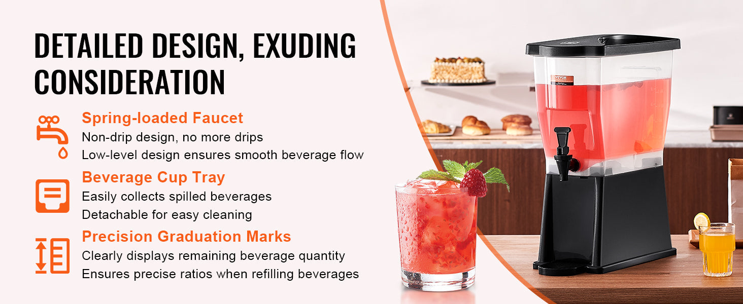 VEVOR Beverage Dispenser for Parties Plastic Juice Dispenser Tea Lemonade Juice Water Dispenser for Restaurants Hotels Parties