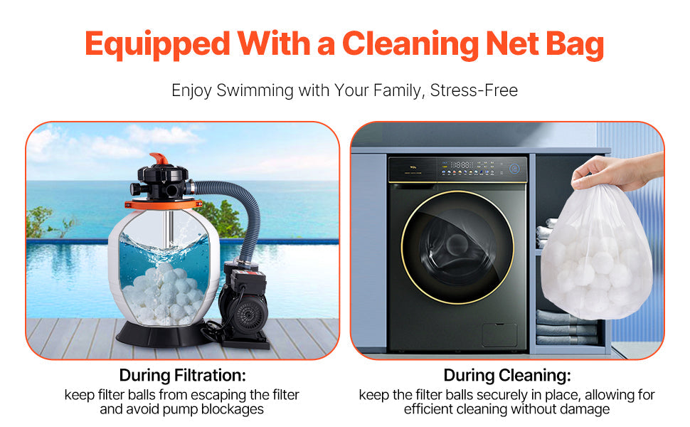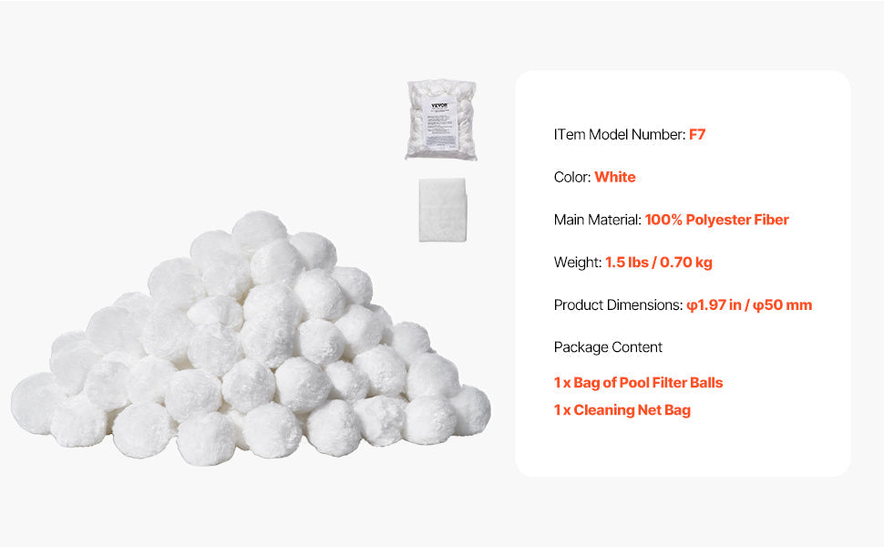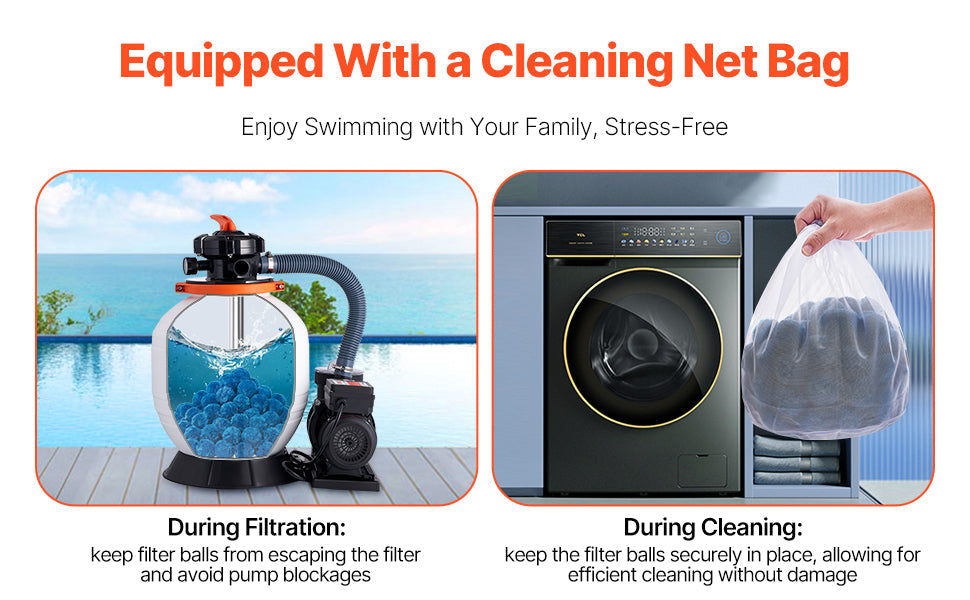 VEVOR Pool Filter Balls 1.5 lbs-4.6 lbs Reusable Blue / White Polyester Fiber Filter Media with Wash Bag, for Pool Aquarium Tank