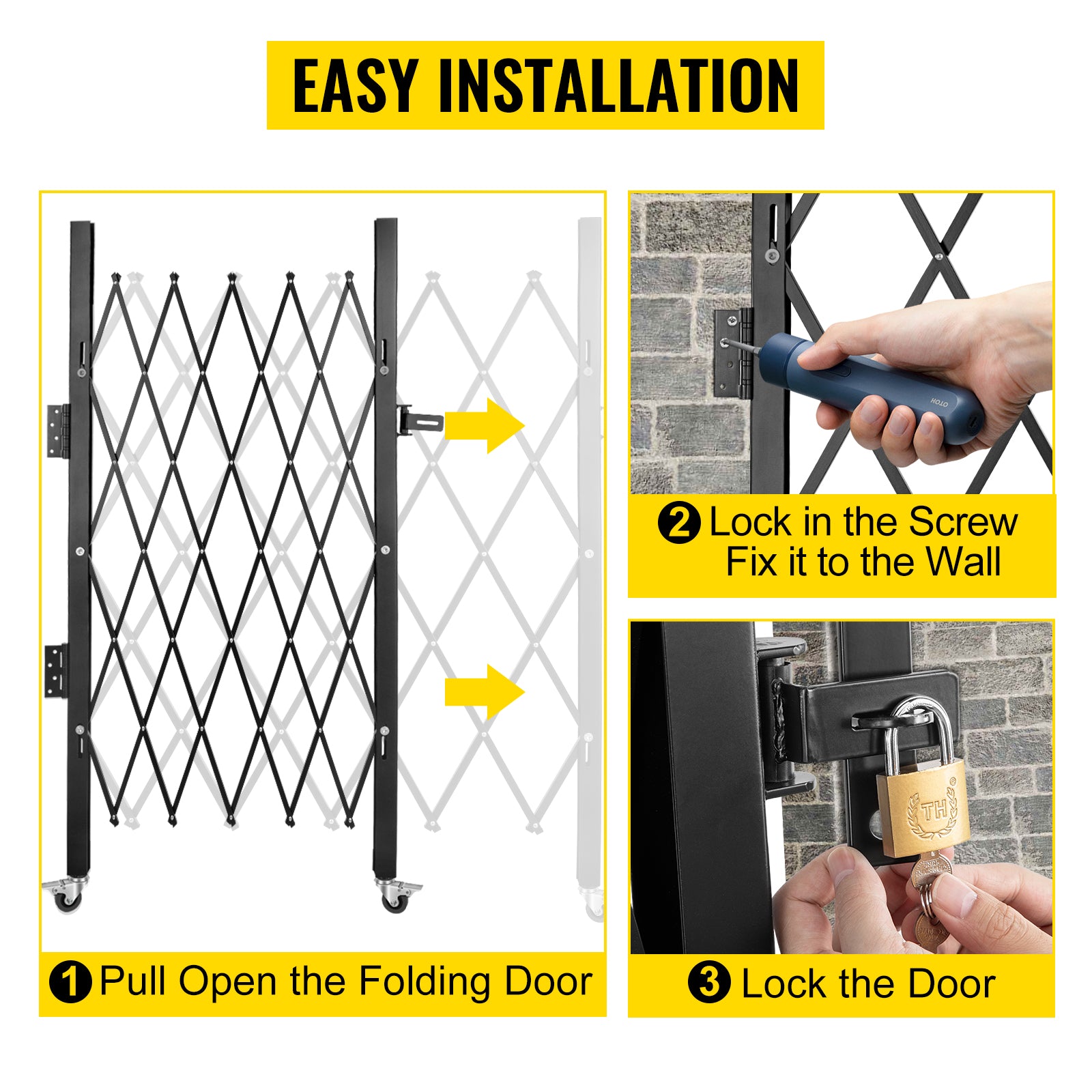 VEVOR Single Folding Security Gate 1.5-2m x 1.22-3.66m Folding Door Gate Steel Accordion Flexible Expanding Security Gate Black