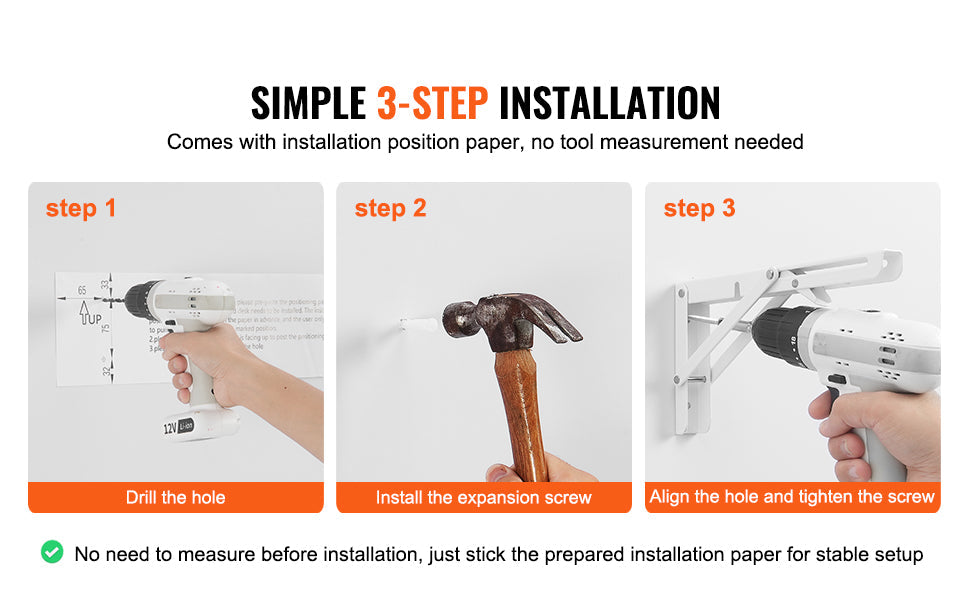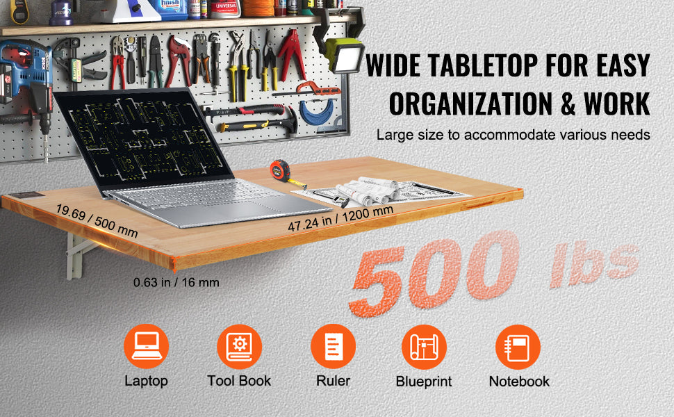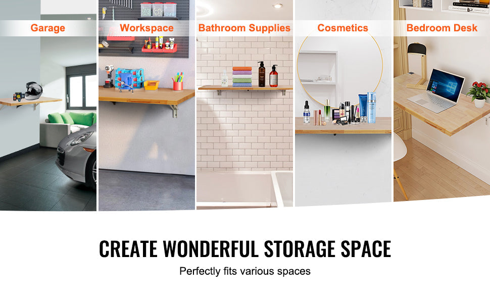 VEVOR Wall Mounted Folding Table, Wall Mount Drop Leaf Table, Wooden Floating Desk with Iron Bracket, Fold Down Desk for Spaces
