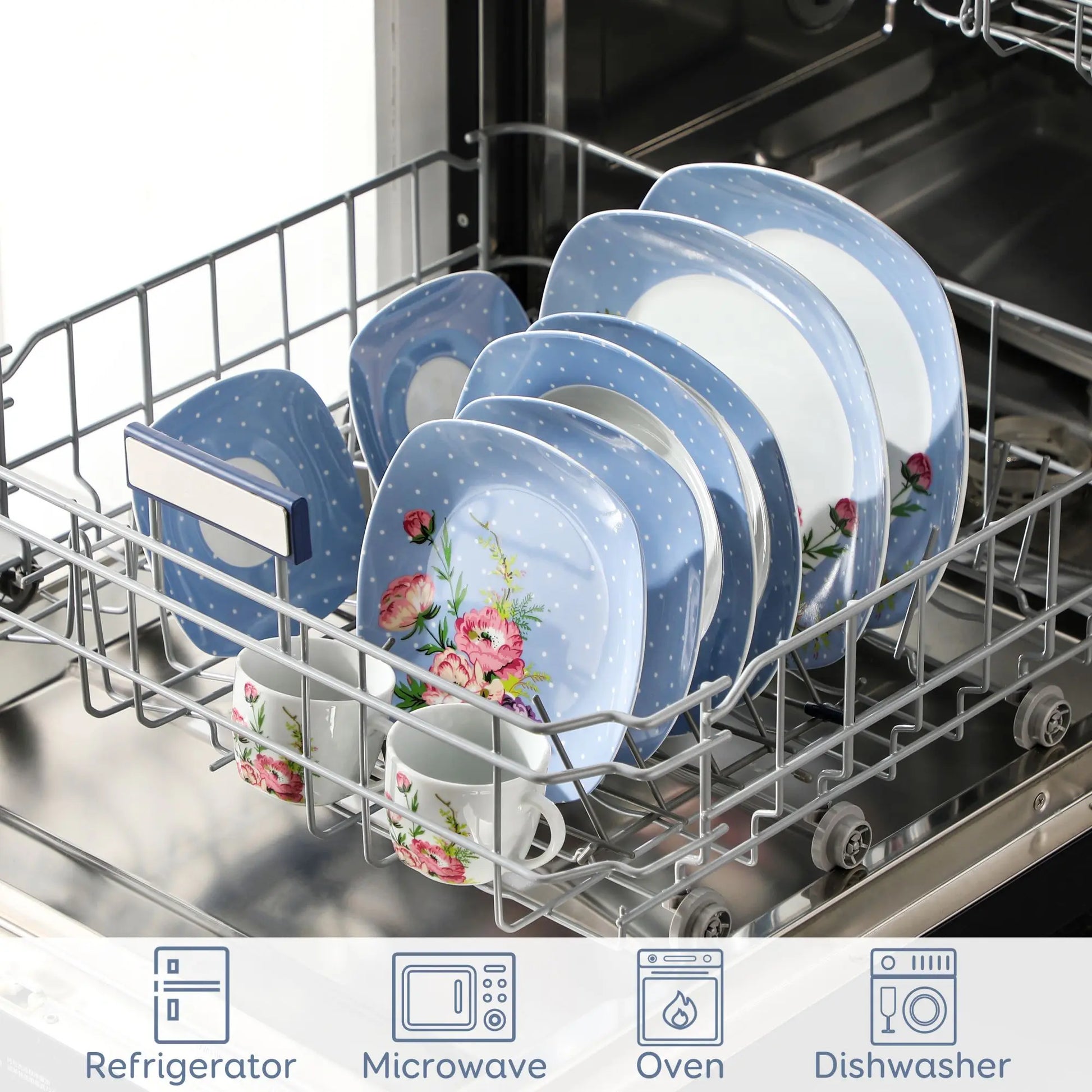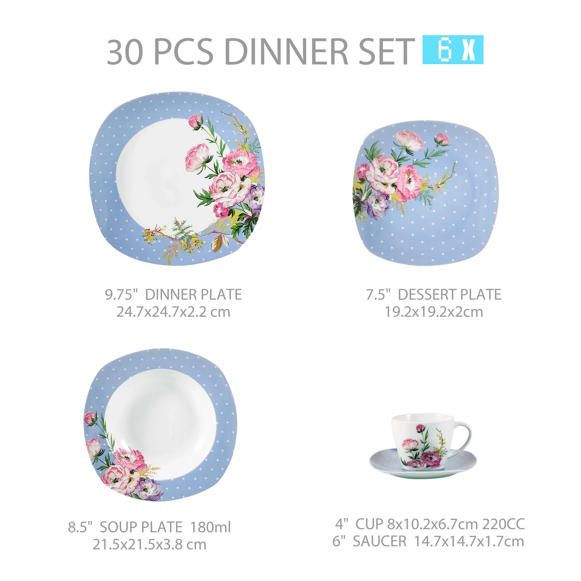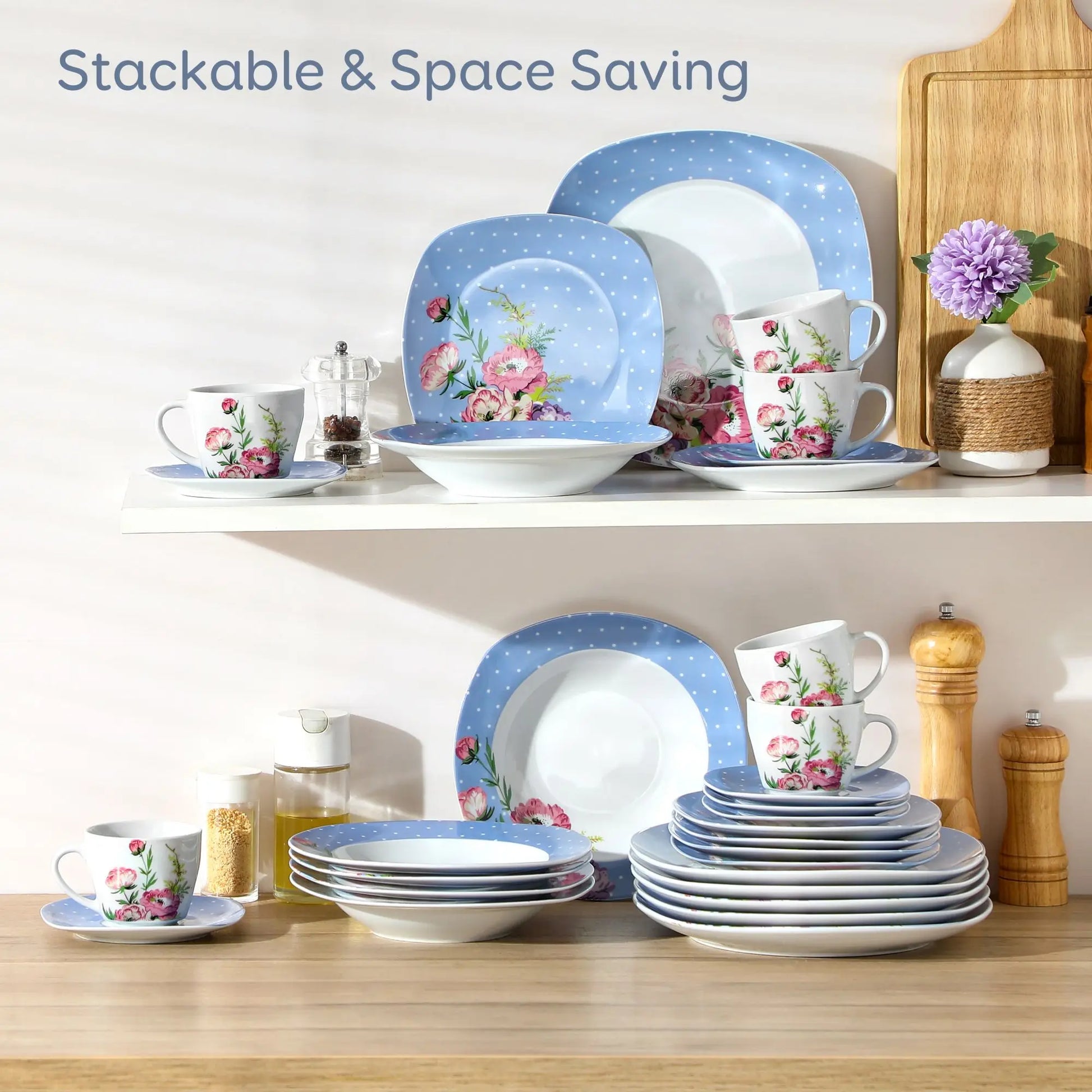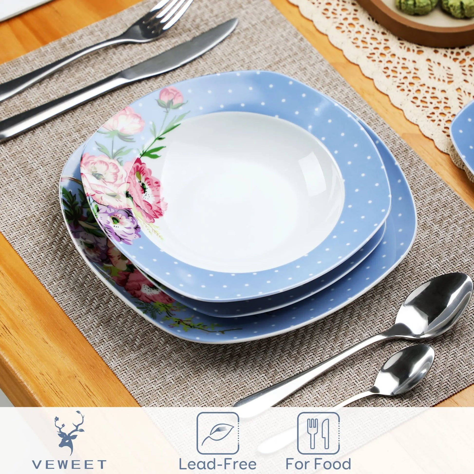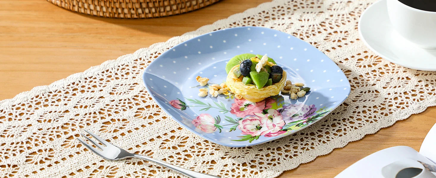 ● MALACASA dinner service sets are made of ivory white porcelain, FDA certified lead and cadmium free for everyday use. With classic square shape, making the dining table beautiful and elegant.