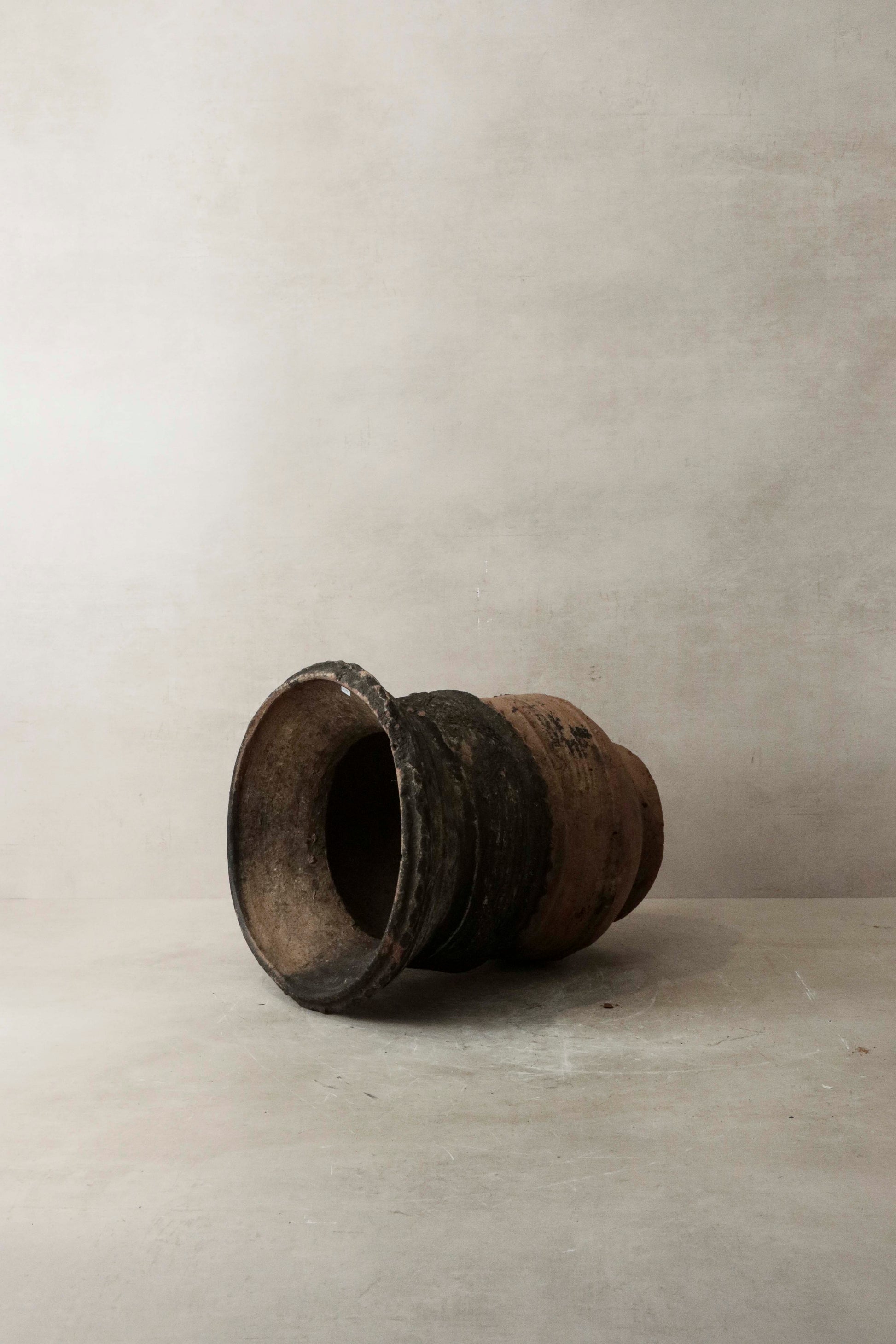 Nupe pot support stands are meticulously crafted from terracotta, designed to provide a stable base for the distinctive round-bottomed Nupe pots. These supports are characterized by broad, flat rings encircling their trunks, enhancing both functionality and aesthetic appeal.