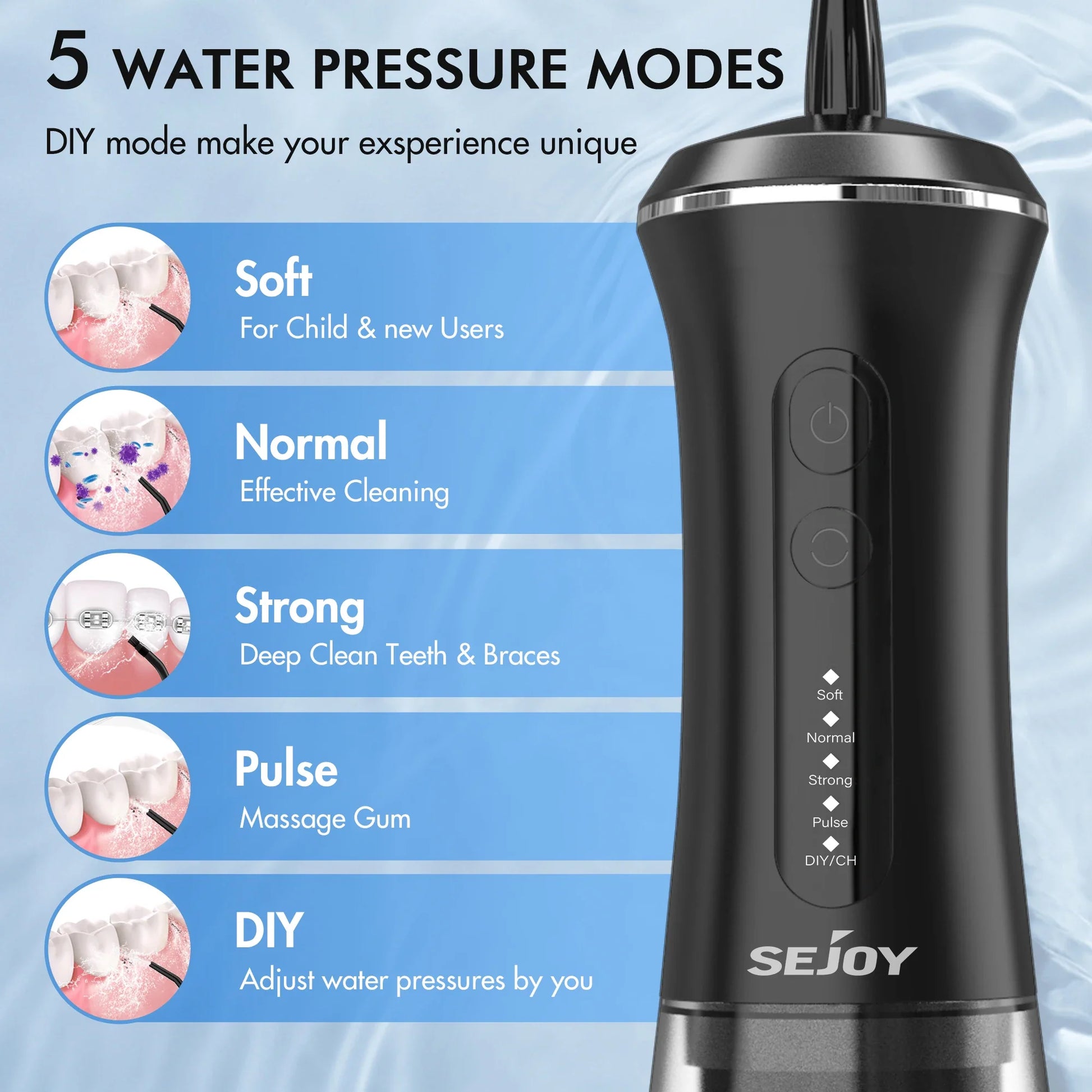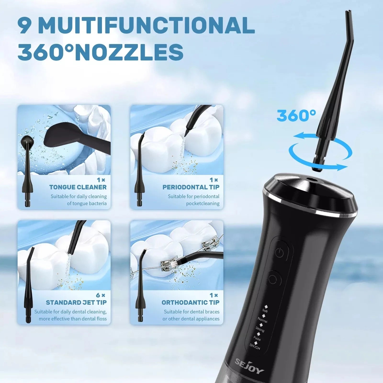Water Flosser Cordless Electric Teeth Oral Irrigator Rechargeable 5 Modes 9 Jet Tips Portable Irrigator Dental for Travel Home