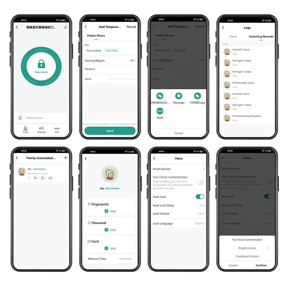 2) Can add fingerprints, password, and RFID cards on the APP, it is very convenient.
