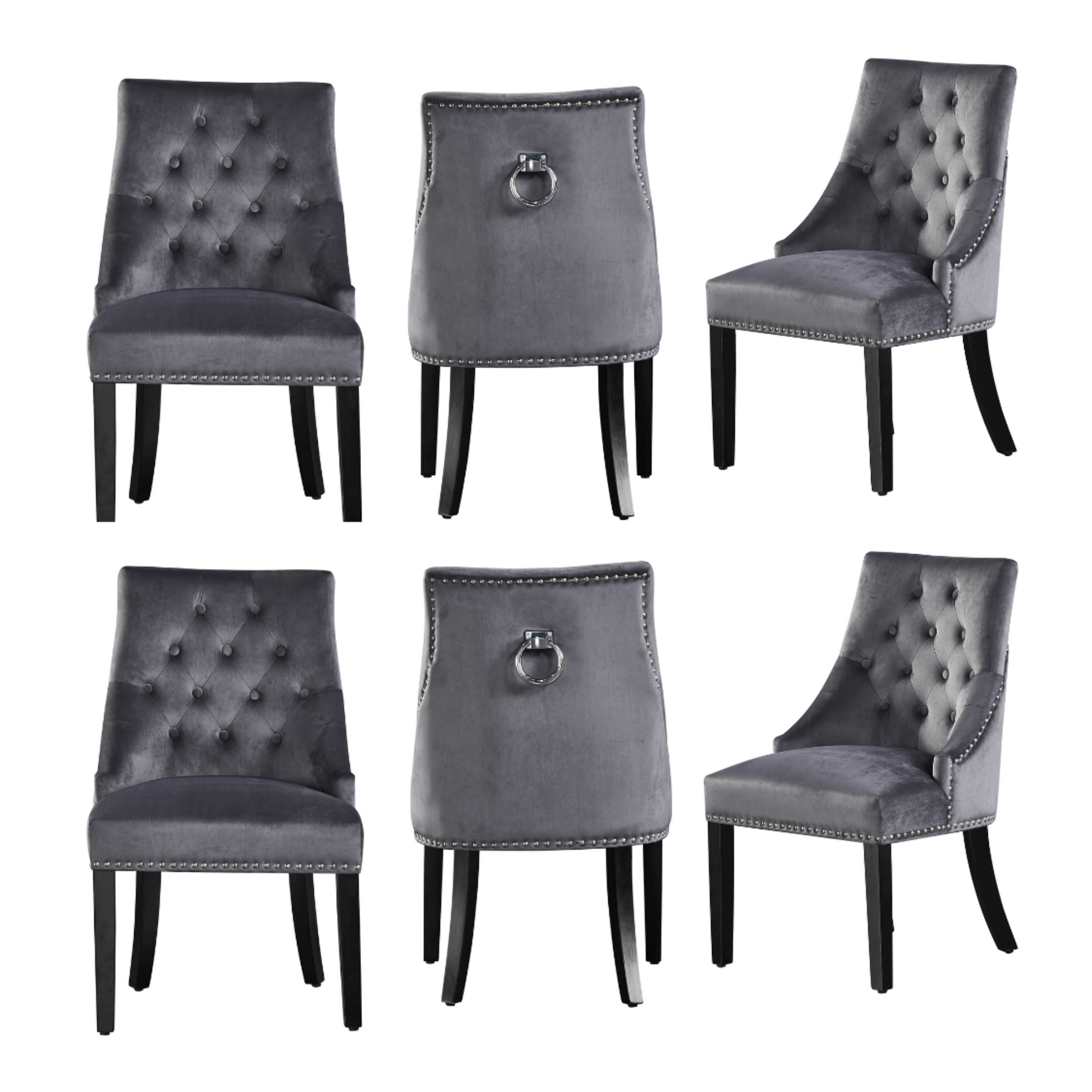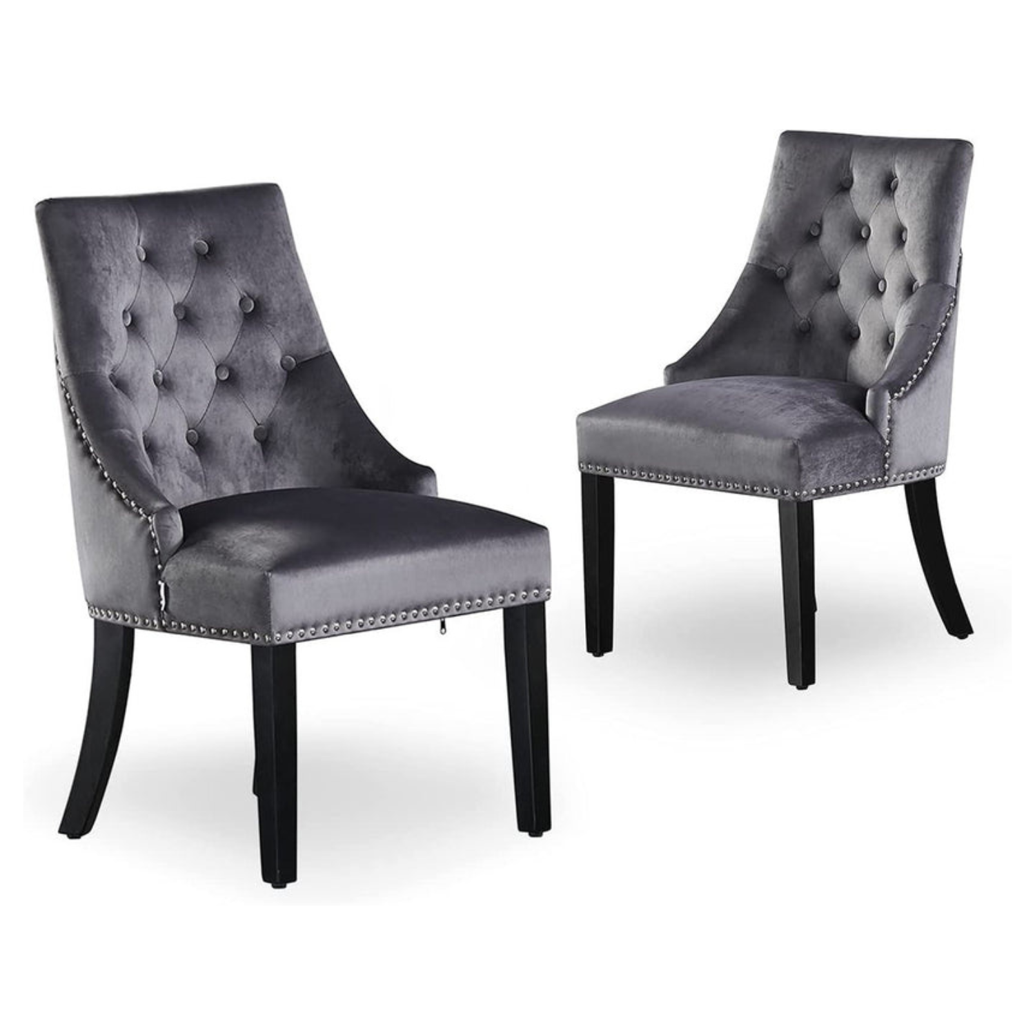 Designer curves, Sweeping arches, Soft edges with Luxury cushioning. The Windsor Dining Chair is a real eye-catcher. With beautiful diamond tufting, metal stud work and knocker handle on the rear to refine the look. Softly textured and wonderfully Plush soft-to-touch velvet. Our Windsor chairs are made using high-grade fabric weaves, with a natural feel that are also easy to clean. Its Silver detailing created with comfort in mind.