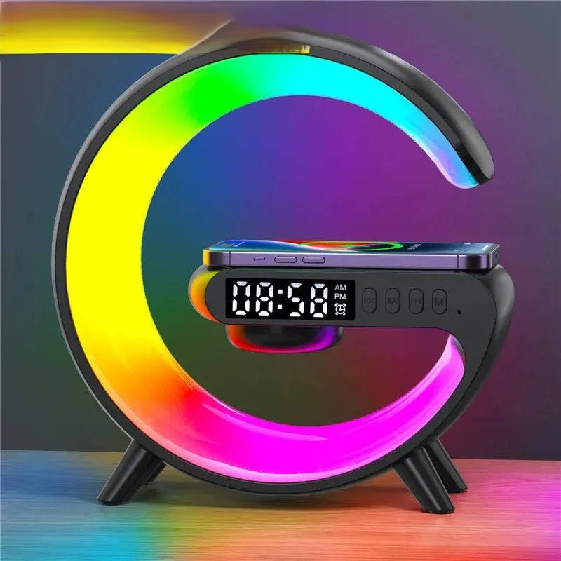 • Dual Functionality: This wireless charger pad stand also doubles as a speaker and RGB night light lamp.