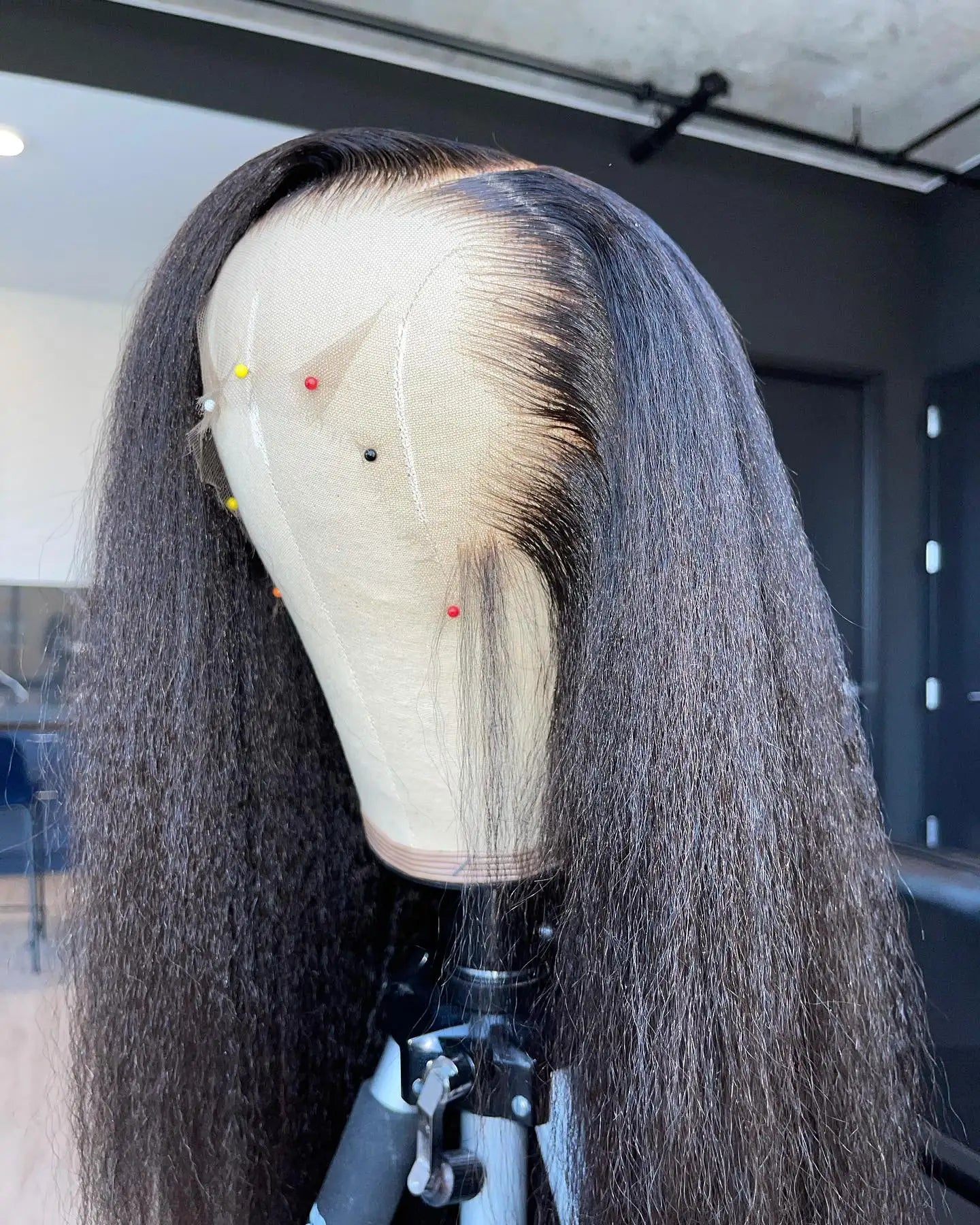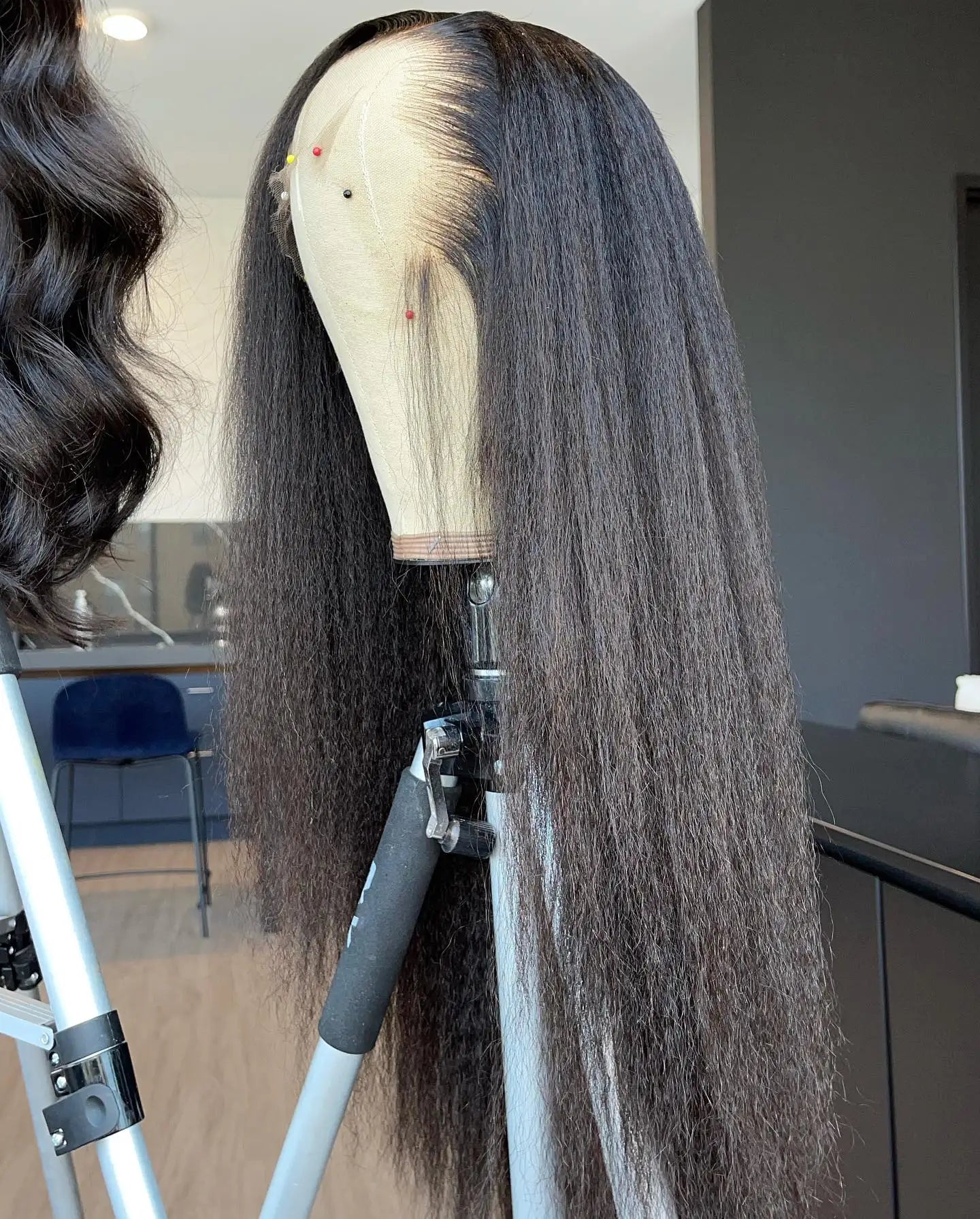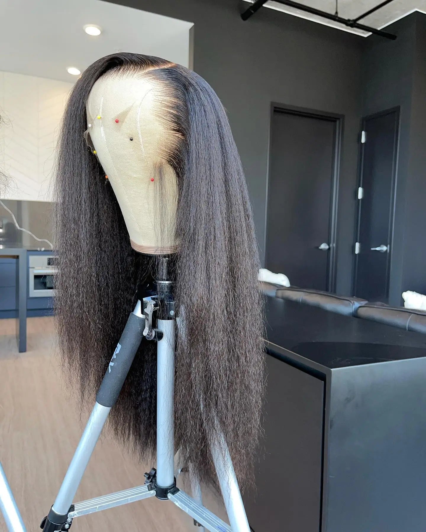 Yaki Raw Human Hair Wig Brazilian Kinky Straight Lace Closure Wigs for Women Pre-plucked 13*4 Lace Frontal Yaki Wigs