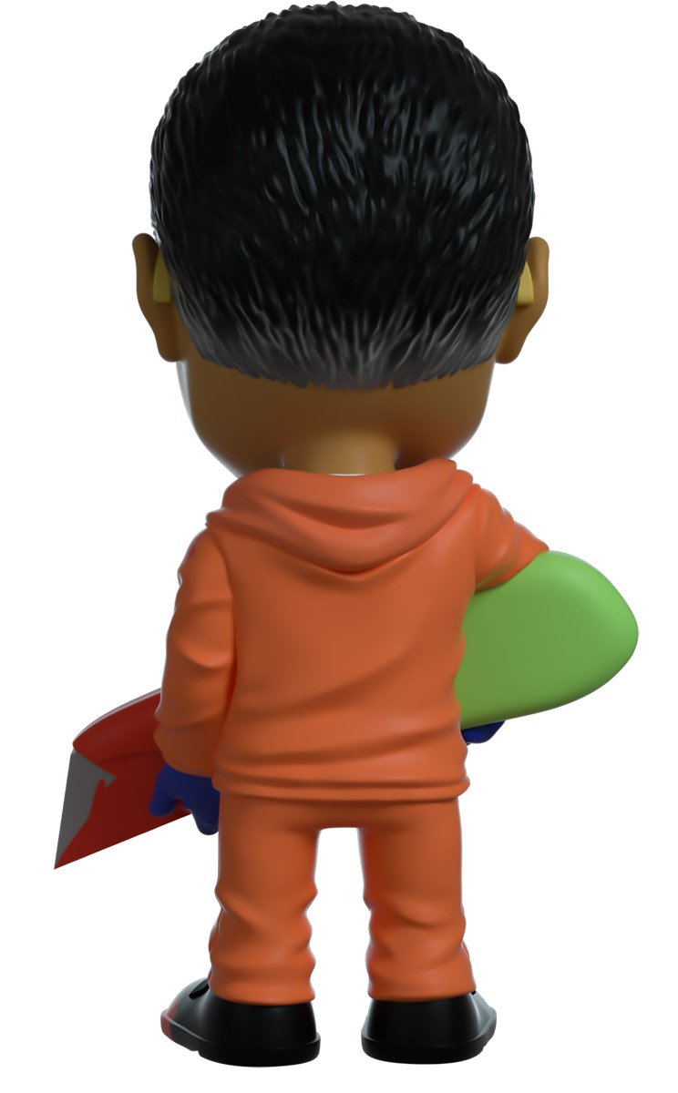 Gus Fring arrives at Youtooz! Standing at 4.6 inches, Gus has a very neutral expression on his face that contrasts heavily with the blood splatters that are decorated around his clothing. He is wearing a matching orange hoodie with orange pants and is accessorized with his gold yellow glasses. Using both hands, he is holding a huge green box cutter shaped weapon that also has red stains on the tip. The exterior of his double-walled packaging shows the empty interior of his resturant, Los Pollos Hermanos. The interior is a yellow background with the resturant's logo. This collectible ships in a matte, embossed, protective outer sleeve and a custom sized plastic protector for maximum protection during shipping.