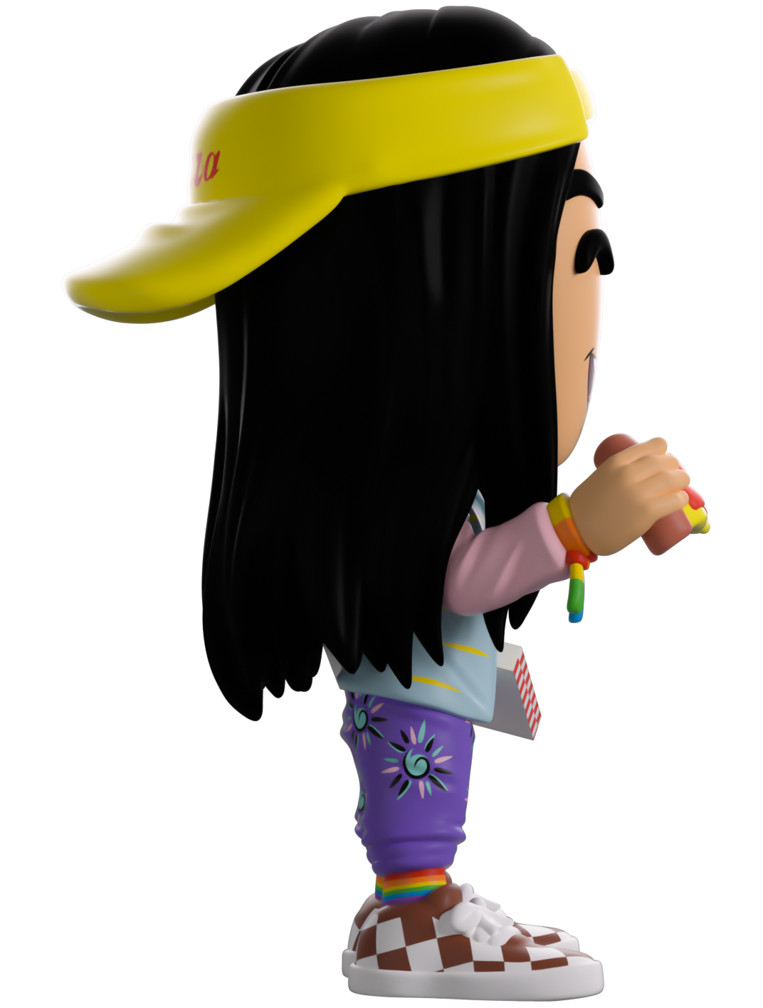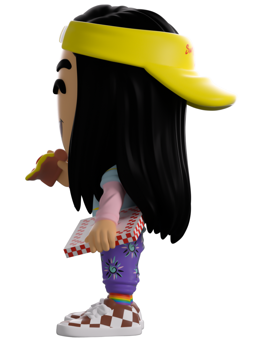 Did someone order a pizza? Well Argyle’s here to serve up the freshest za along with his Youtooz debut! With a huge smile stretching across his face as he stands at 4.6 inches tall with a slice of pizza raised in his right hand as the red checked box is resting against his hip, a bright yellow ‘Surfer Boy’ visor sits backwards on his head over his long waist length black hair. Wearing an outfit as bright as his personality, he’s dressed in a blue shirt over his pink and yellow long sleeve, purple patterned pants, rainbow socks and checked sneakers. The exterior of his packaging sees him hanging out the window of the Surfer Boy Pizza delivery van, while the interior is black sticky goop running in tendrils over a black background. The protective sleeve recreates the Upside Down with a dilapidated house and spindeling trees as his figure can be seen through the large clear display window at its front. This collectible ships in a matte, embossed, protective outer sleeve and a custom sized plastic protector for maximum protection during shipping.