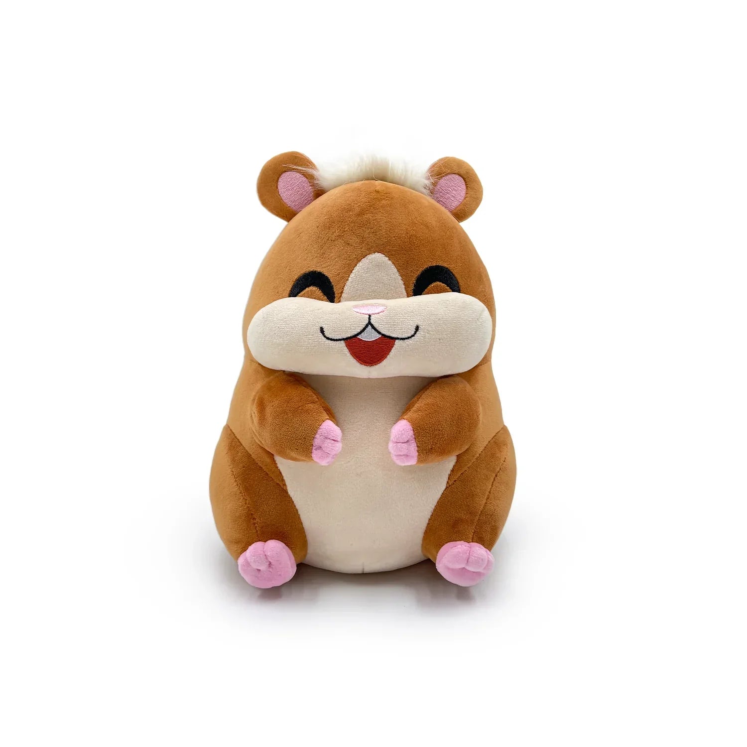 Jamie has escaped from the testing lab to levitate his way into Youtooz! At 9 inches tall this absolute unit of a hamster sits his chonky brown body down in a plop with little pink paws reached out forward. A happy smile beams from his crème face as a perfect tuft of blonde hair sits stop his head between two of the most adorable round ears. This plush is packed to the seams with 100% PP cotton and is made of a mix of minky and faux fur materials, absolutely perfect for cuddling or defending you from intruders!